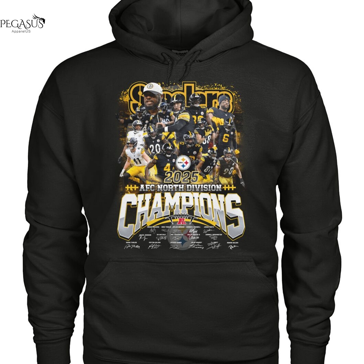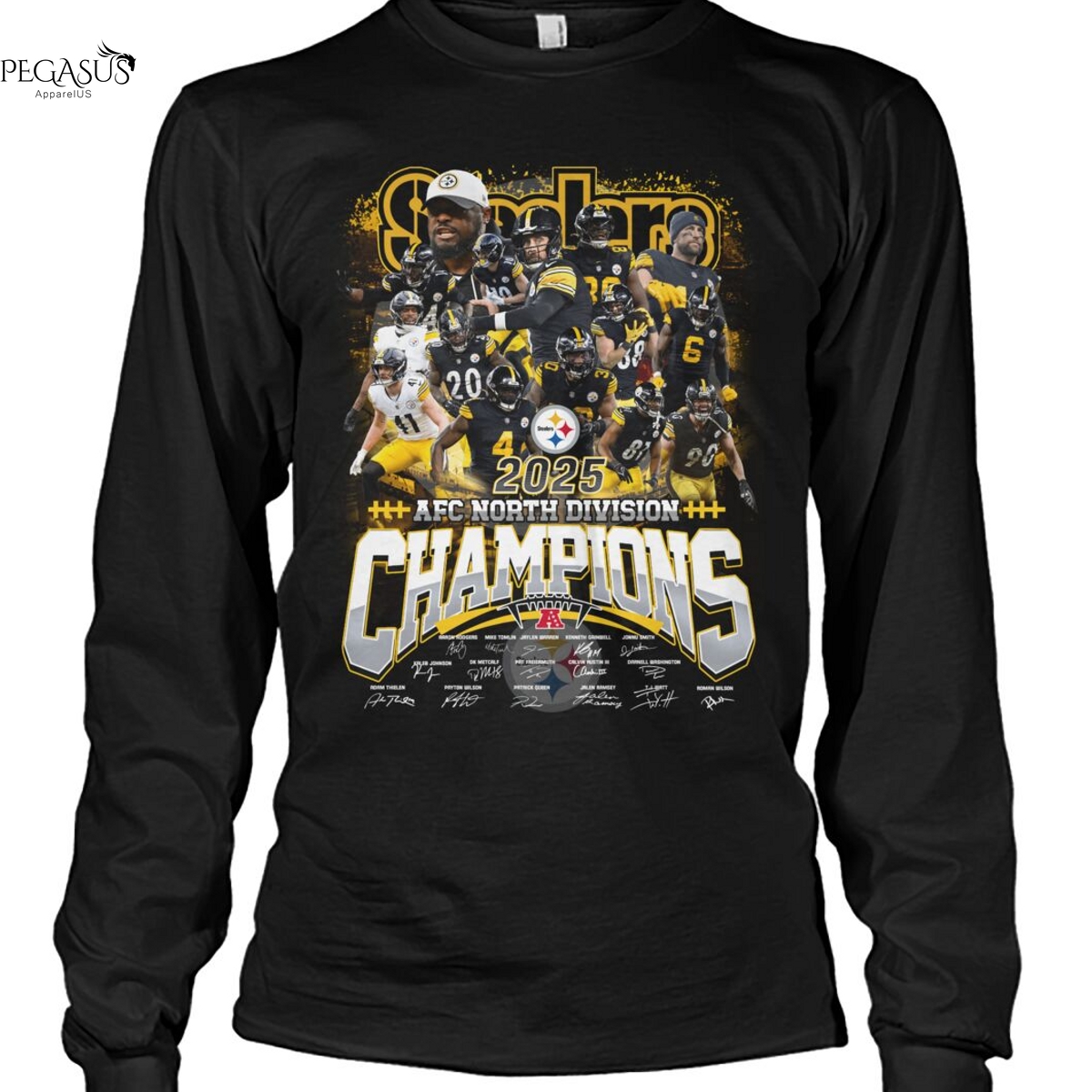 2025 Pittsburgh Steelers AFC North Division Champions Signature Unisex T-Shirt, Hoodie, Ladies, Long Sleeve, Sweatshirt, Mug