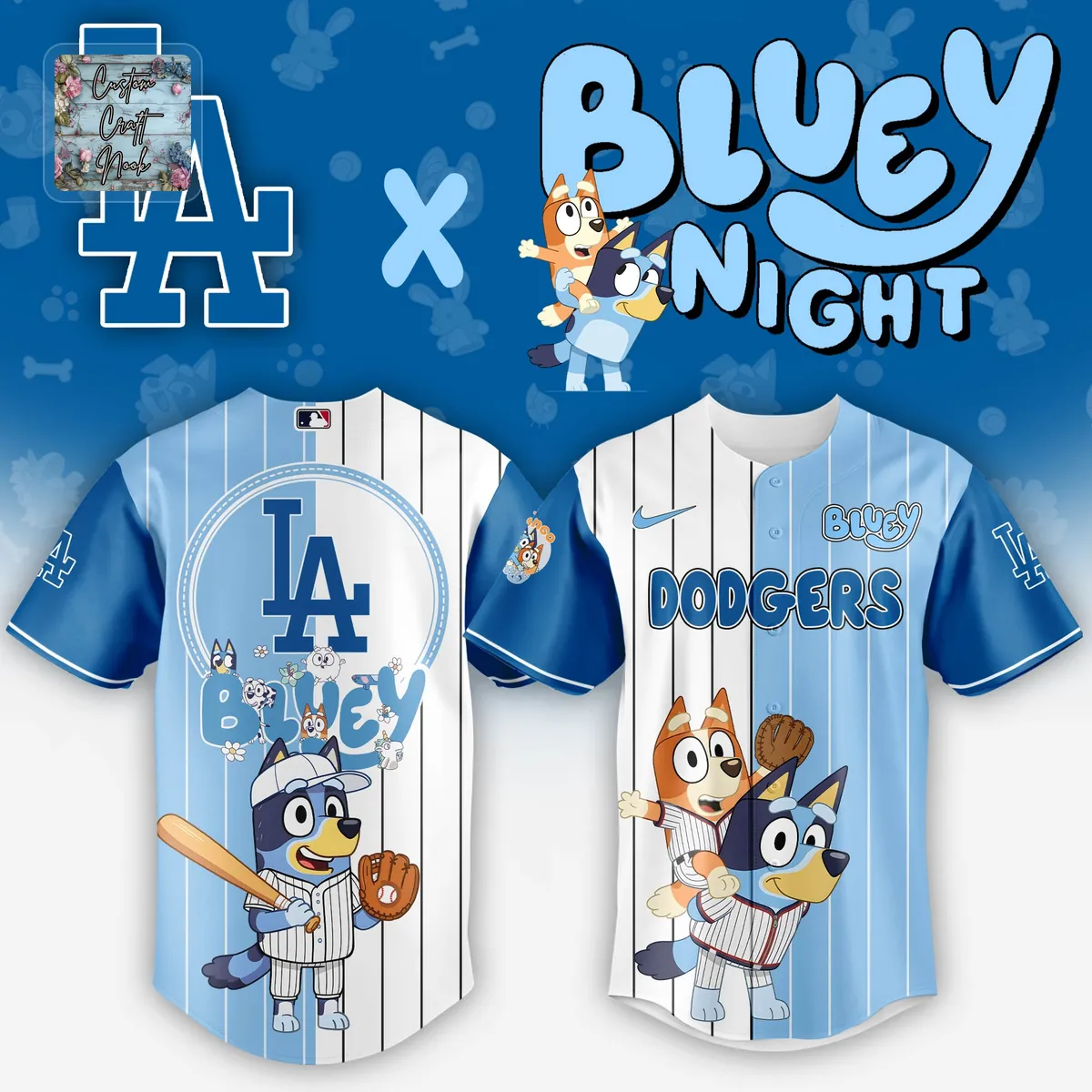 This Bluey Night LA Dodgers Pinstripe Baseball Jersey isn’t just a piece of apparel; it’s a ticket to an unforgettable moment of pure joy. You’re not simply giving a gift; you’re orchestrating a memory they’ll cherish forever.