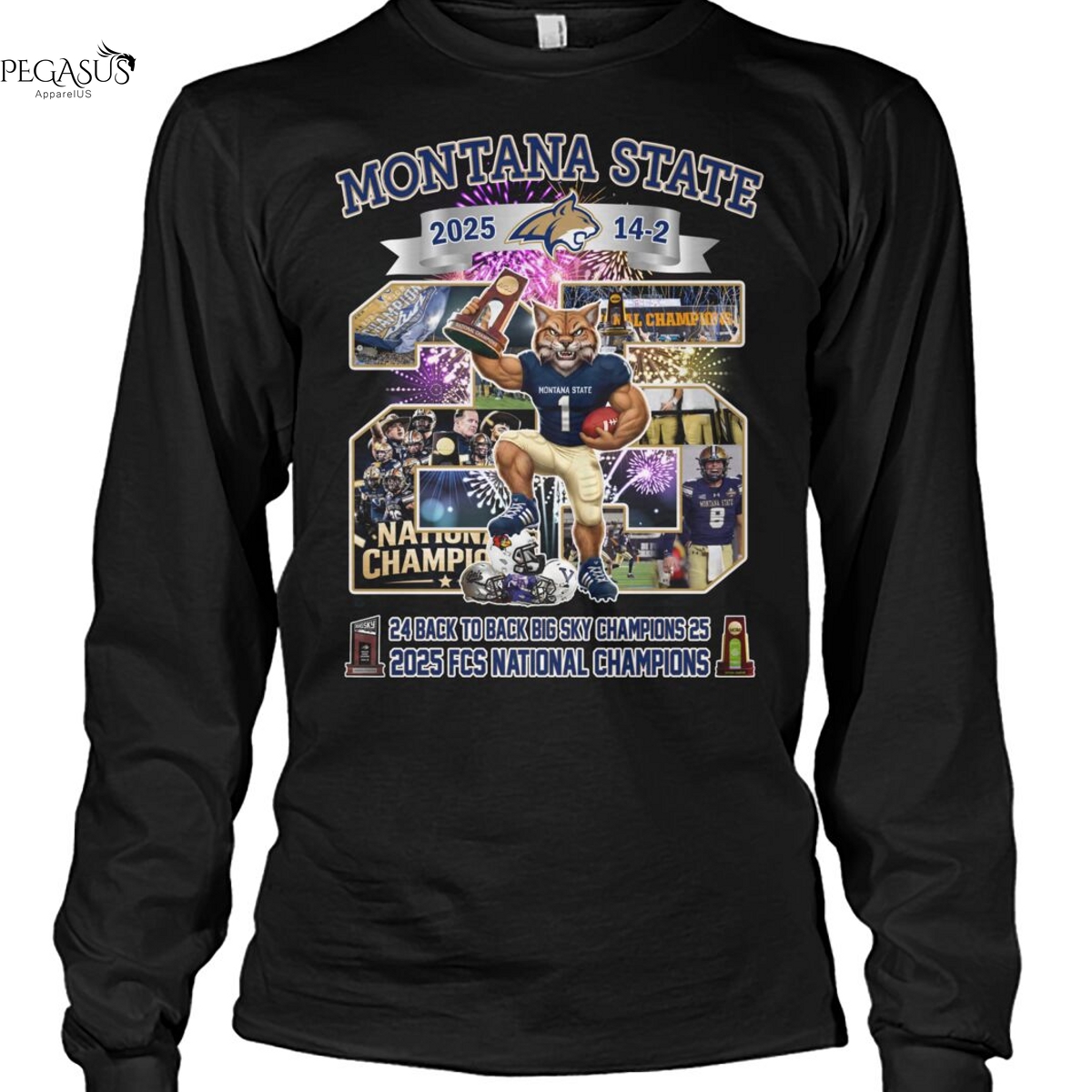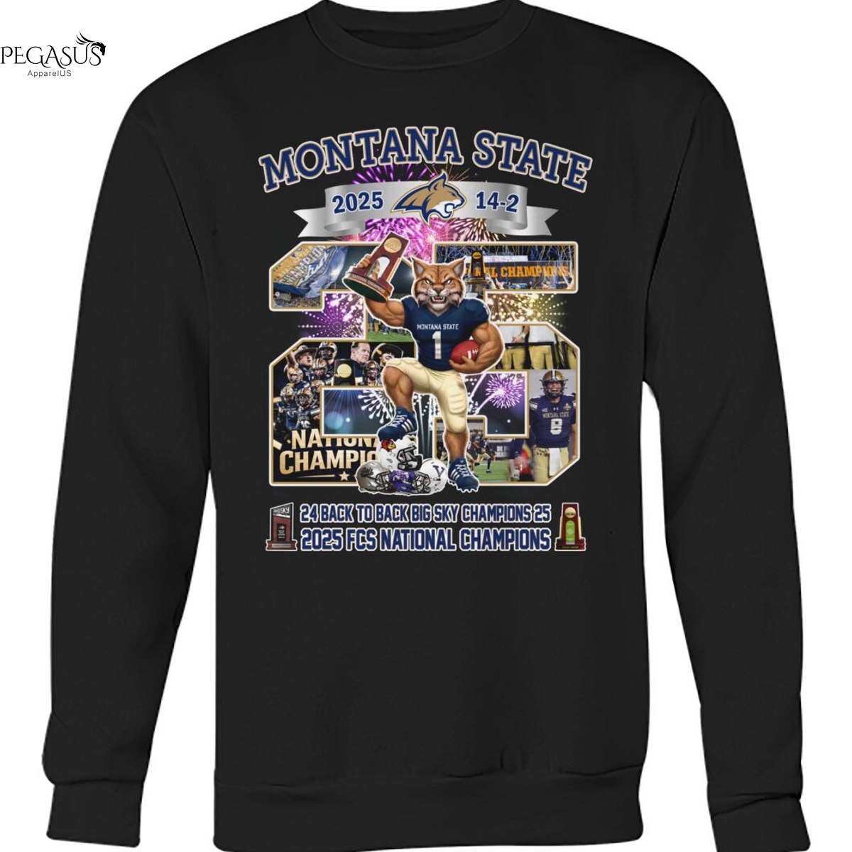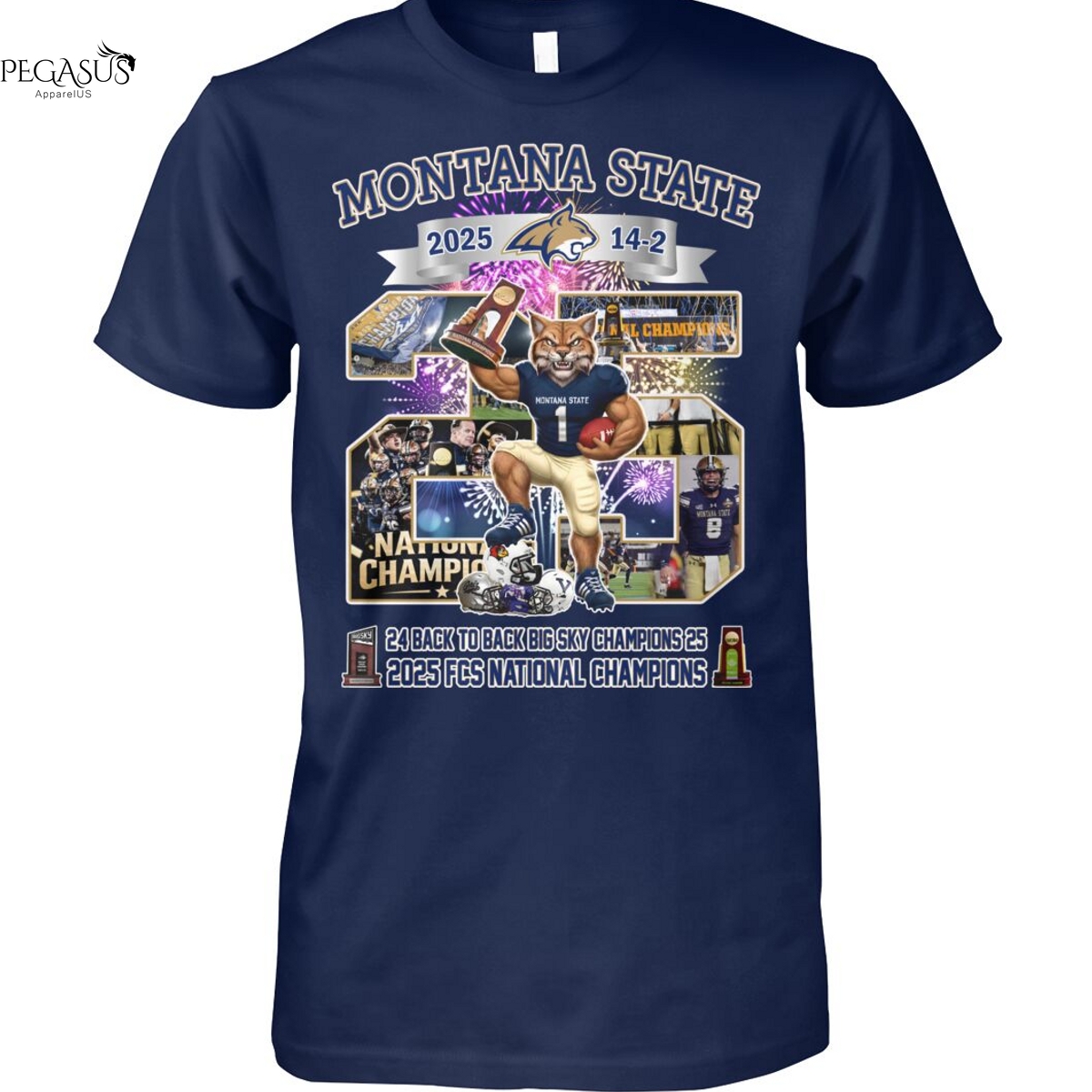 Montana State Bobcats 24 Back To Back Sky Champions 25 2025 FCS National Champions Unisex T-Shirt, Hoodie, Ladies, Long Sleeve, Sweatshirt, Mug